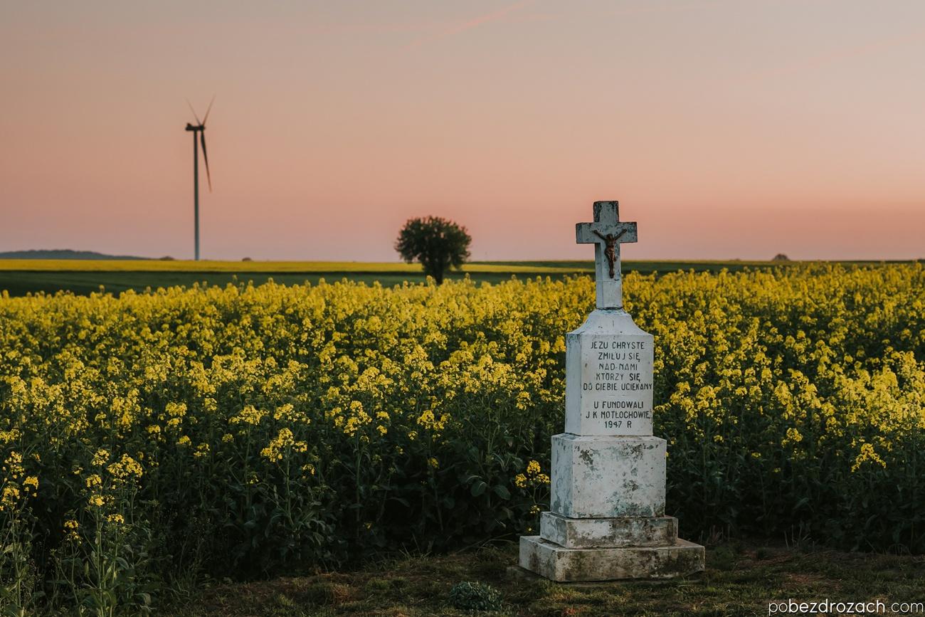 Zdobywanie Bąkowej Góry miało być zadaniem pozornie prostym ponieważ samo wzniesienie nie należy do największych. Okazało się jednak, że z powodu braku tabliczki szczytowej oraz dość specyficznego ukształowania terenu (kilkanaście pagórkowatych wzniesień obok siebie) czekało nas całkiem ciekawe wyzwanie. Dopiero z pomocą wysokościomierza w zegarku w końcu namierzyliśmy (prawdopodobnie) najwyższy z nich. Kilka chwil później zameldowaliśmy się przy ruinach zamku/dworu obronnego (z XV wieku) oraz przy urokliwym dworze Małachowskich (z XVIII wieku). By pokazać kolejną perełkę tego wzniesienia musieliśmy wrócić tu ponownie w momencie gdy aleja wierzb w końcu się zazieleniła. Relację z wyprawy domykają okoliczne kapliczki skąpane w pofalowanych polach rzepaku. Warto było wrócić tu ponownie ponieważ w pełnym rozkwicie wiosny miejsce to wyglądało zupełnie inaczej niż podczas naszej pierwszej marcowej wizyty.